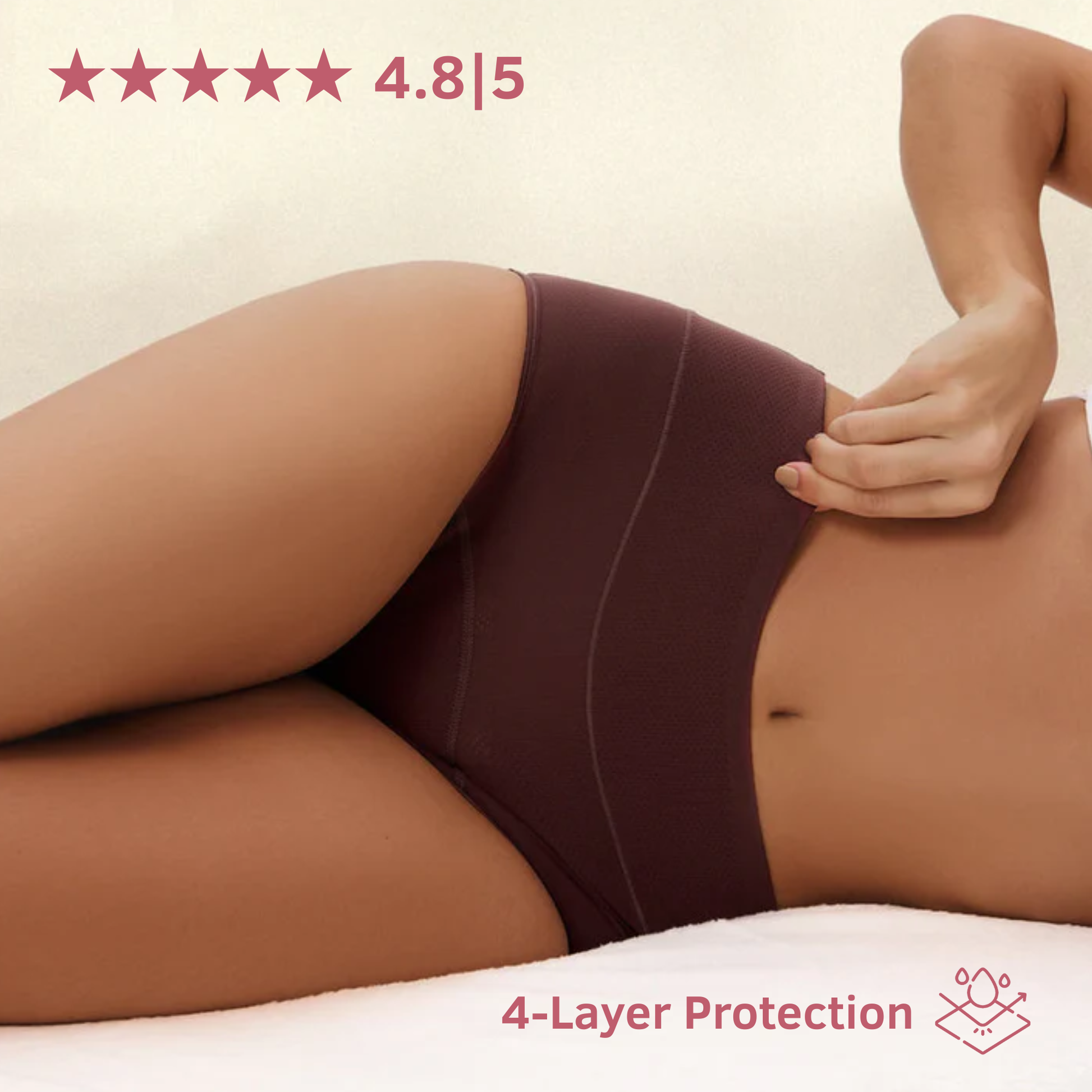 | Looks and feels like normal underwear | ✓ Invisible under clothes | ✗ Visible lines | Thin but leaks | ✗ Very obvious |
